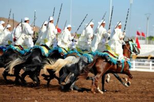 الرئيسية/الجاذبية السياحية لإقليم الجديدة: وجهة تجمع بين الشواطئ الذهبية والتاريخ العريق والثقافة الأصيلة./مهرجان التبوريدة أو العيطة مهرجان التبوريدة أو العيطة